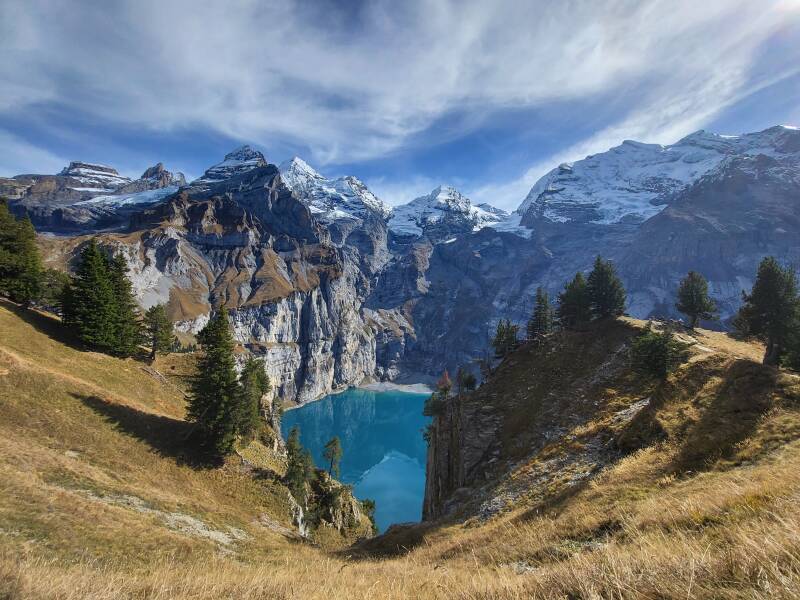 - Après le petit déjeuner, vous prenez une télécabine qui vous mène au départ d’une des plus belles randonnées de Suisse (5h de marche environ) ! Le fameux lac d’Oeschinen et son eau émeraude, entouré de l'imposant paysage montagneux du massif de Blümlisal, ne vous laissera pas indifférent tant le spectacle est féérique !!