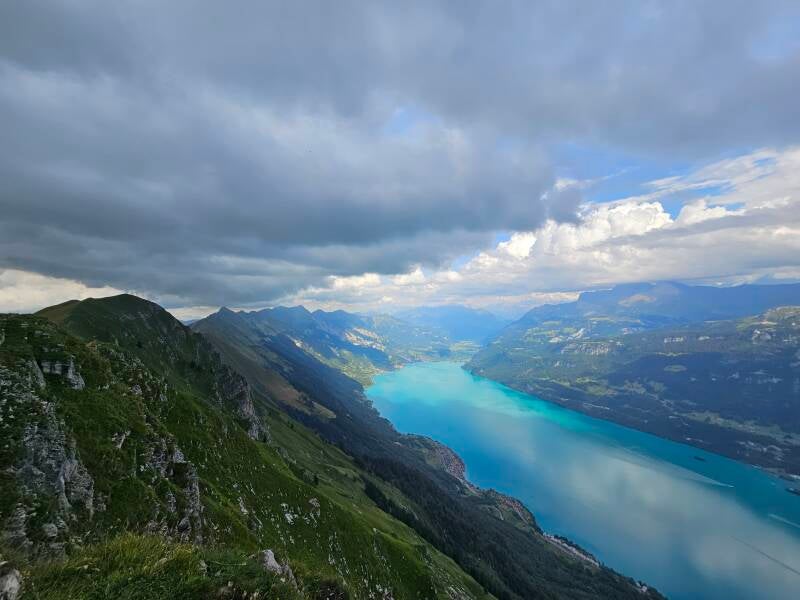 - Après le petit déjeuner, prenez un funiculaire qui vous mènera à 1323 mètres d'altitude en 8 minutes, au Harderkulm. Après environ 1h30 de marche, vous arrivez dans une prairie qui offre une vue époustouflante sur le lac de Brienz et la crête qu'il faut suivre pour arriver au premier sommet. Une fois en haut une pause photo s'impose, c'est majestueux ! Endroit idyllique pour y faire le pique-nique.